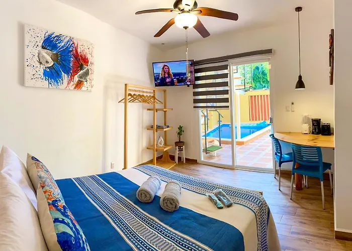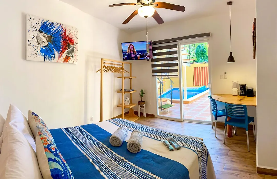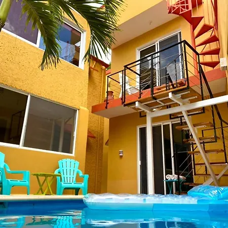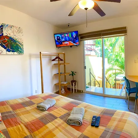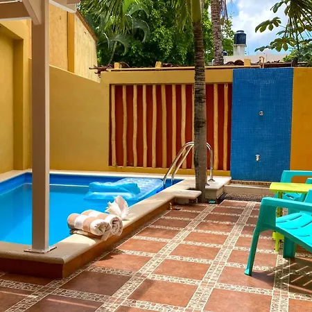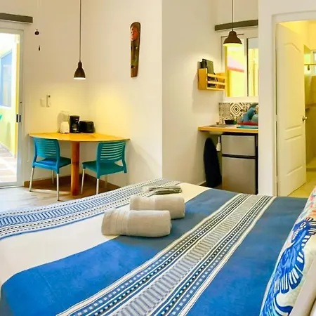 Posada San Juan カンクンアパートにはテラスがあり、カンクンから徒歩で5分の場所に位置しています。 28市場はアパートから1.8km離れた所で、プラヤ・パライソから4.7km先にあります。